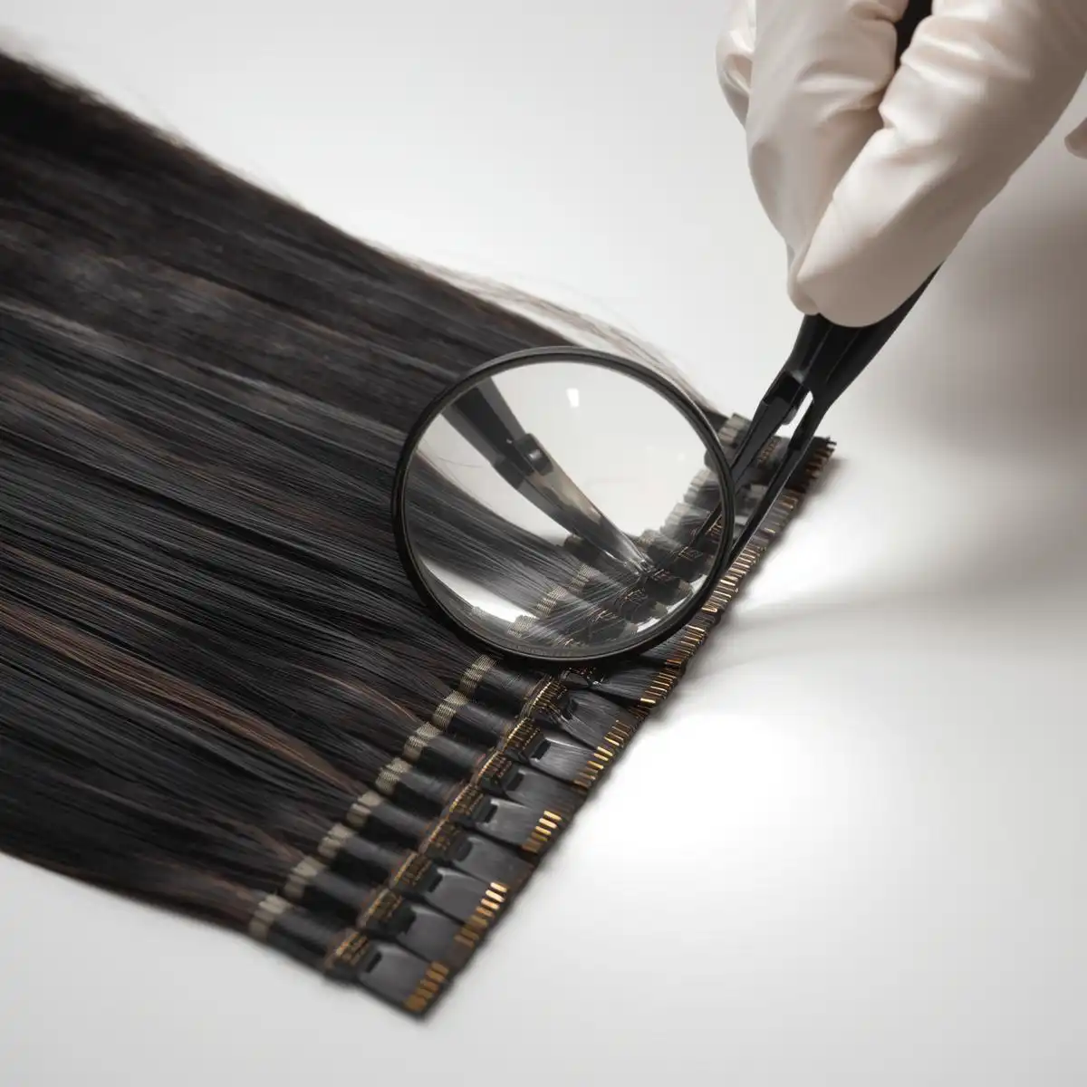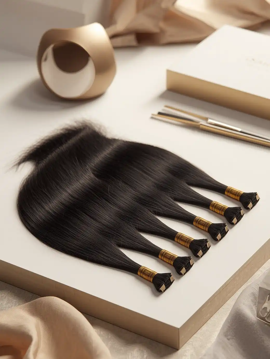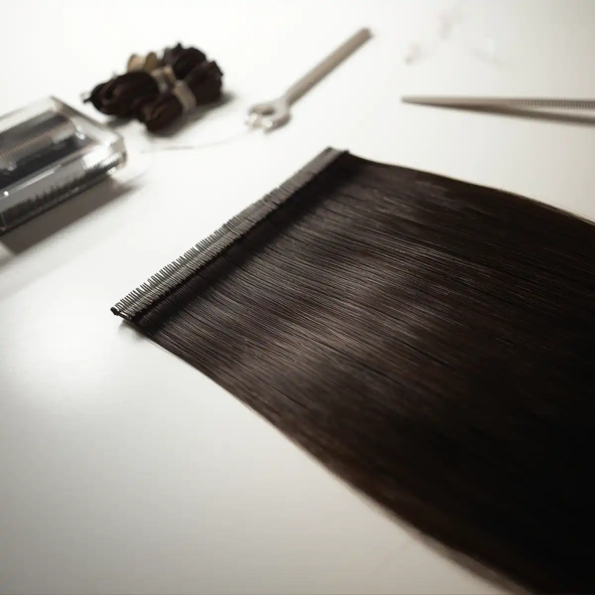 The hair is carefully drawn and weighed to create uniform 1-gram strands (customizable by request). This consistency is crucial for stylists to achieve a balanced and evenly distributed look throughout the client's head.