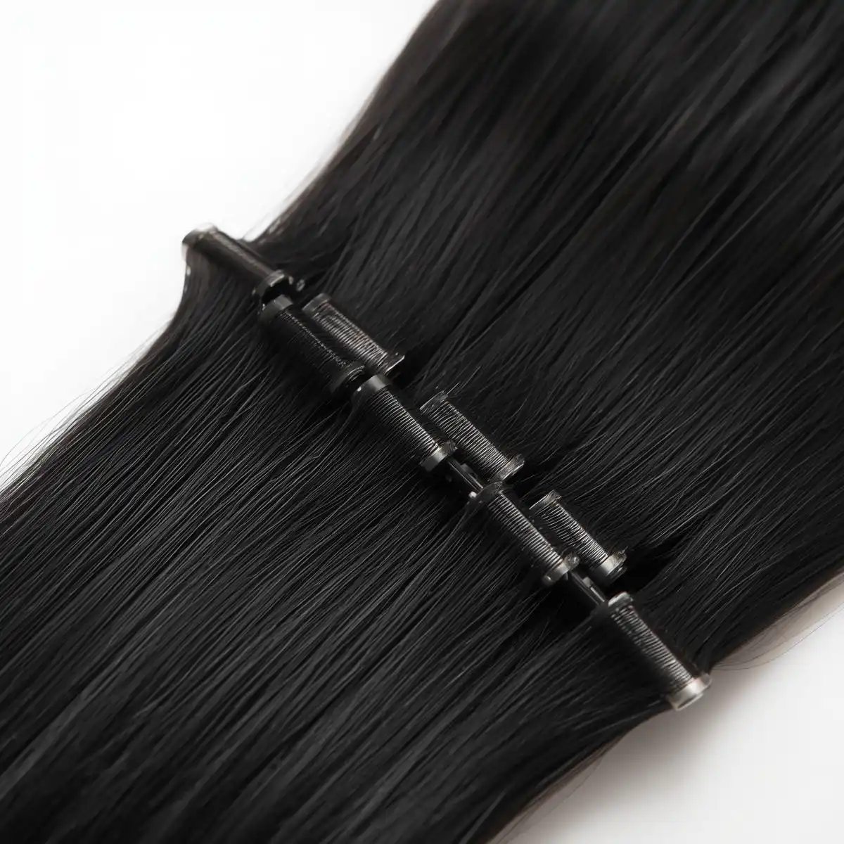 Each extension is an individual strand of hair, or a small group of strands, bonded at the top with a durable, high-quality keratin tip shaped like the letter "I" or a tiny shoelace tip. We utilize premium Italian keratin for its unique properties: it is strong enough to hold the strands together securely, yet gentle enough to be easily removed by a professional without leaving residue.